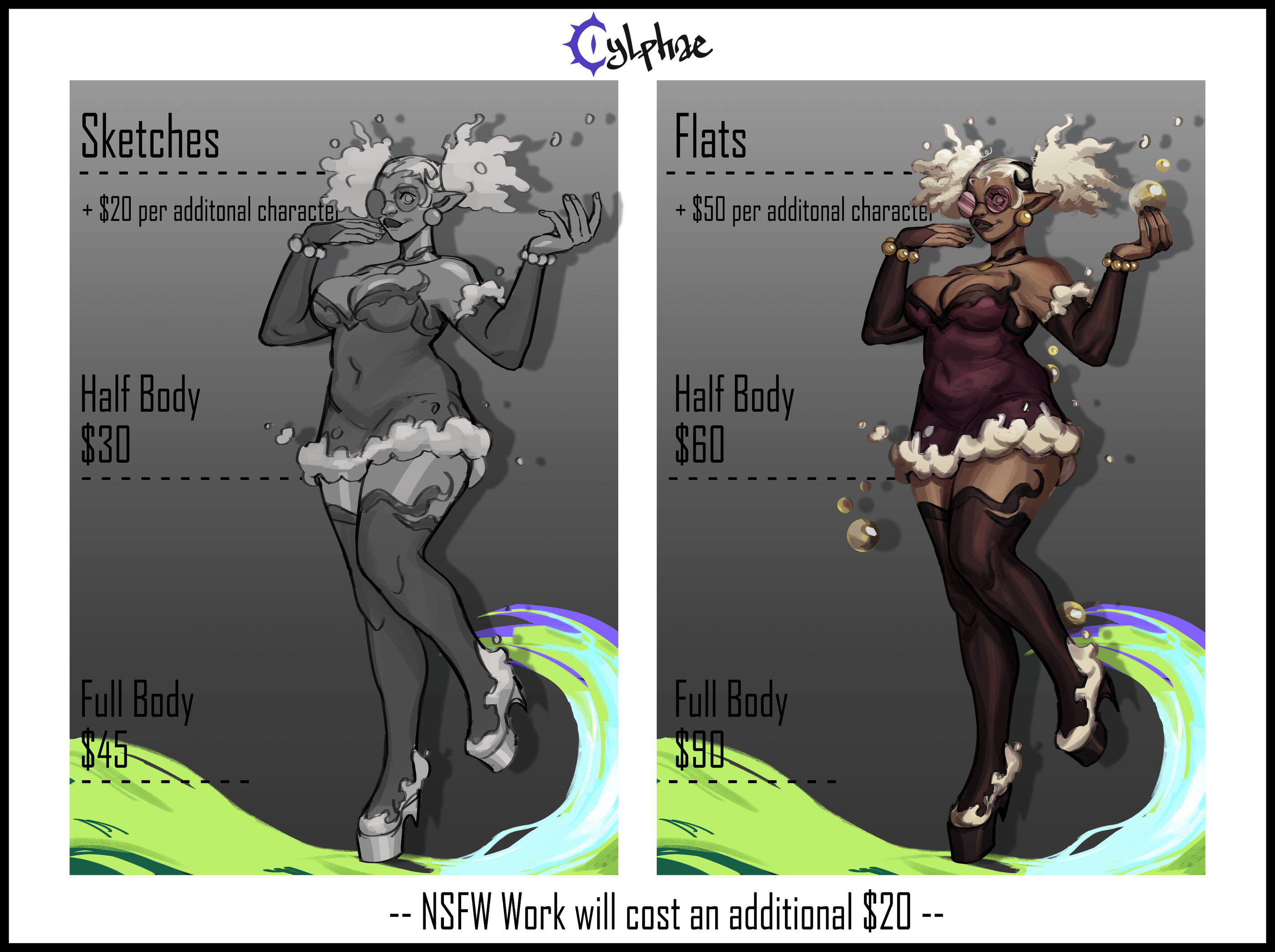 ⚠ NSFW works are subject to a $20 cost increase