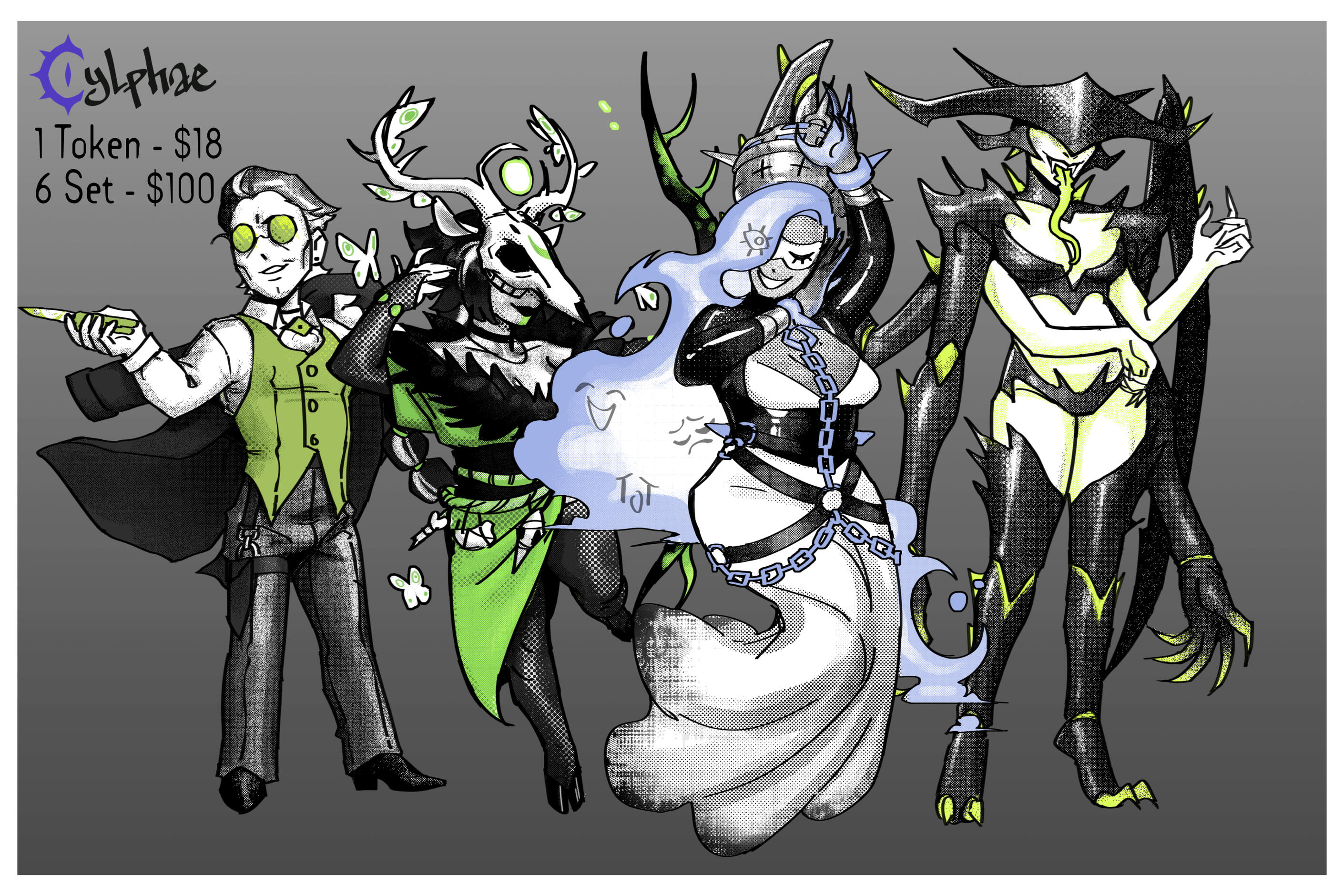 Tokens done in my version of the Maleghast artstyle.